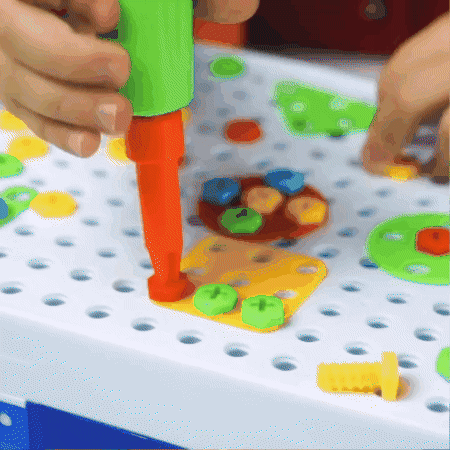 Las piezas y el taladro seguro estimulan lógica, motricidad y concentración.
